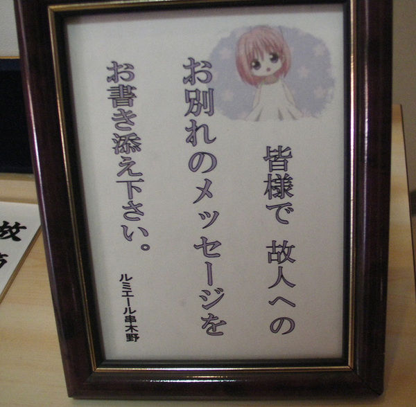 そんな立派な祖母の葬儀会場でこれ見た時は吹いた。なぜこんなど田舎で萌えキャラ・・・